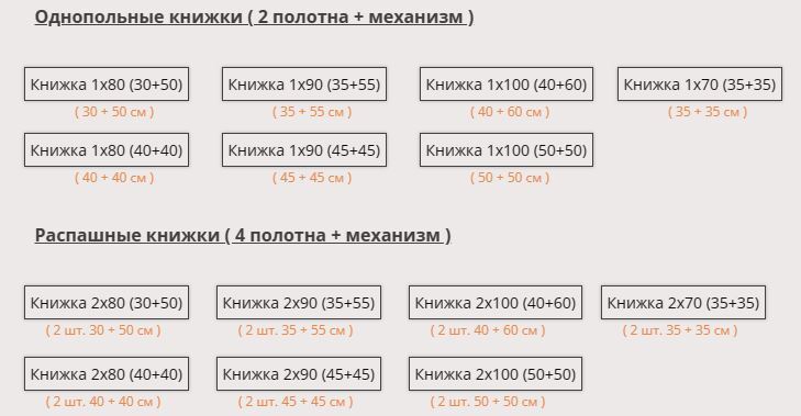 Дверное полотно шириной от 300 мм до 1000 мм с шагом 50 мм