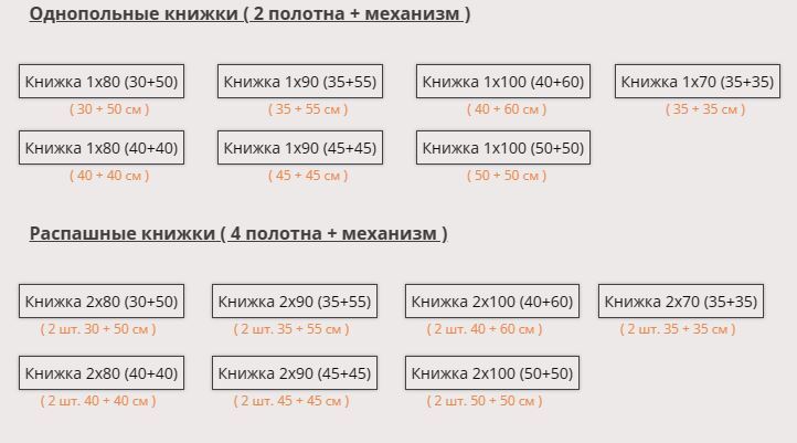 Дверное полотно шириной от 400 мм до 1000 мм с шагом 50 мм